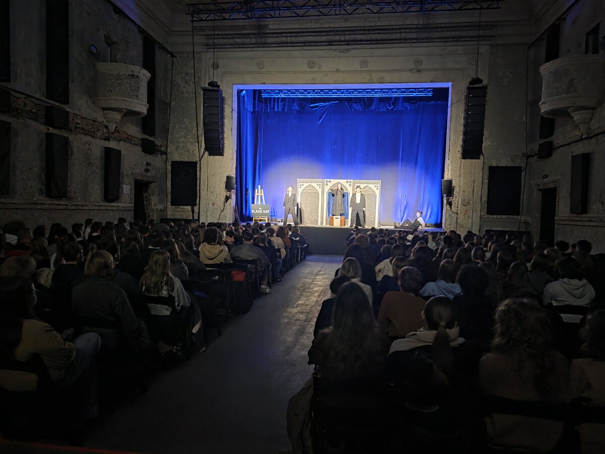 Balandžio 14 d. mūsų gimnazijos 11-12 klasių mokiniai vyko į American Drama Group Europe spektaklį anglų kalba “A Pale-Gold Raven“, sukurtą pagal Edgaro Allano Poe apsakymus ir poeziją. Spektaklį mokiniai turėjo galimybę stebėti Vilniaus istorija alsuojančioje renginių erdvėje „Kablys“, įspūdingo interjero salėje. Tai buvo retai pasitaikanti ir neįkainojama patirtis.