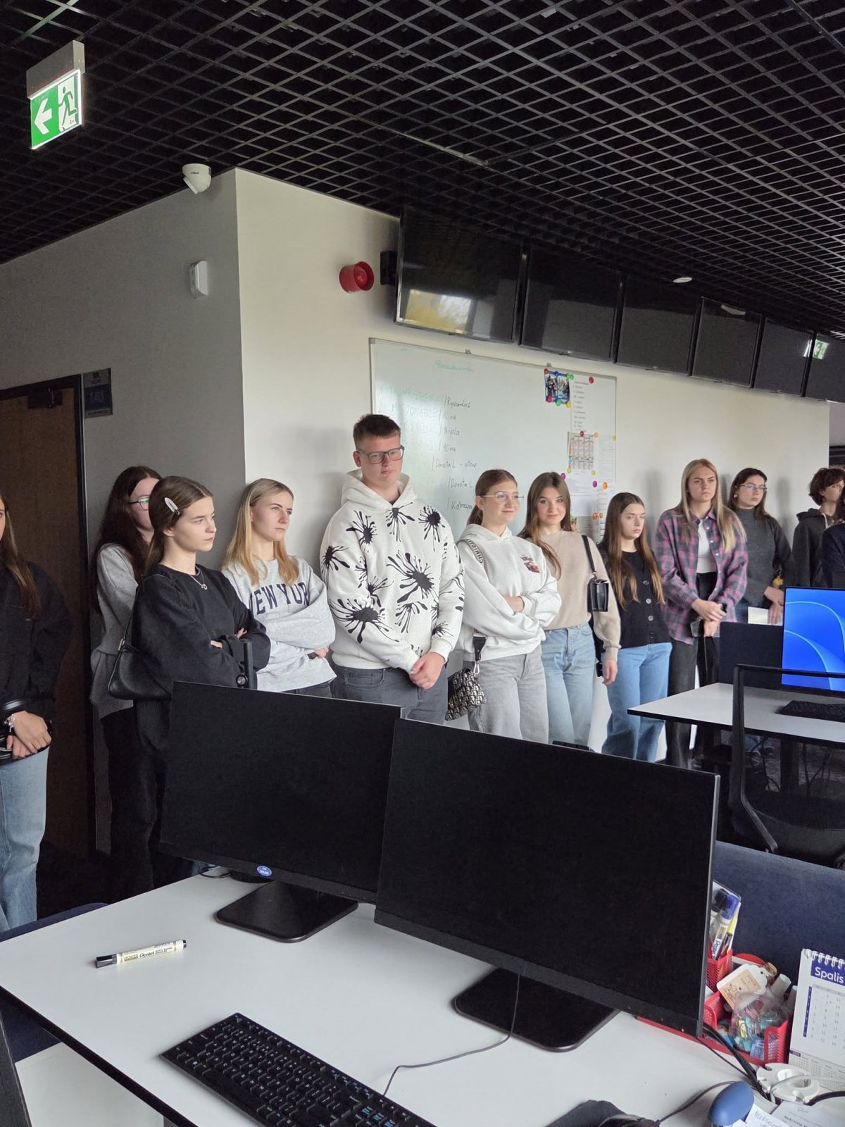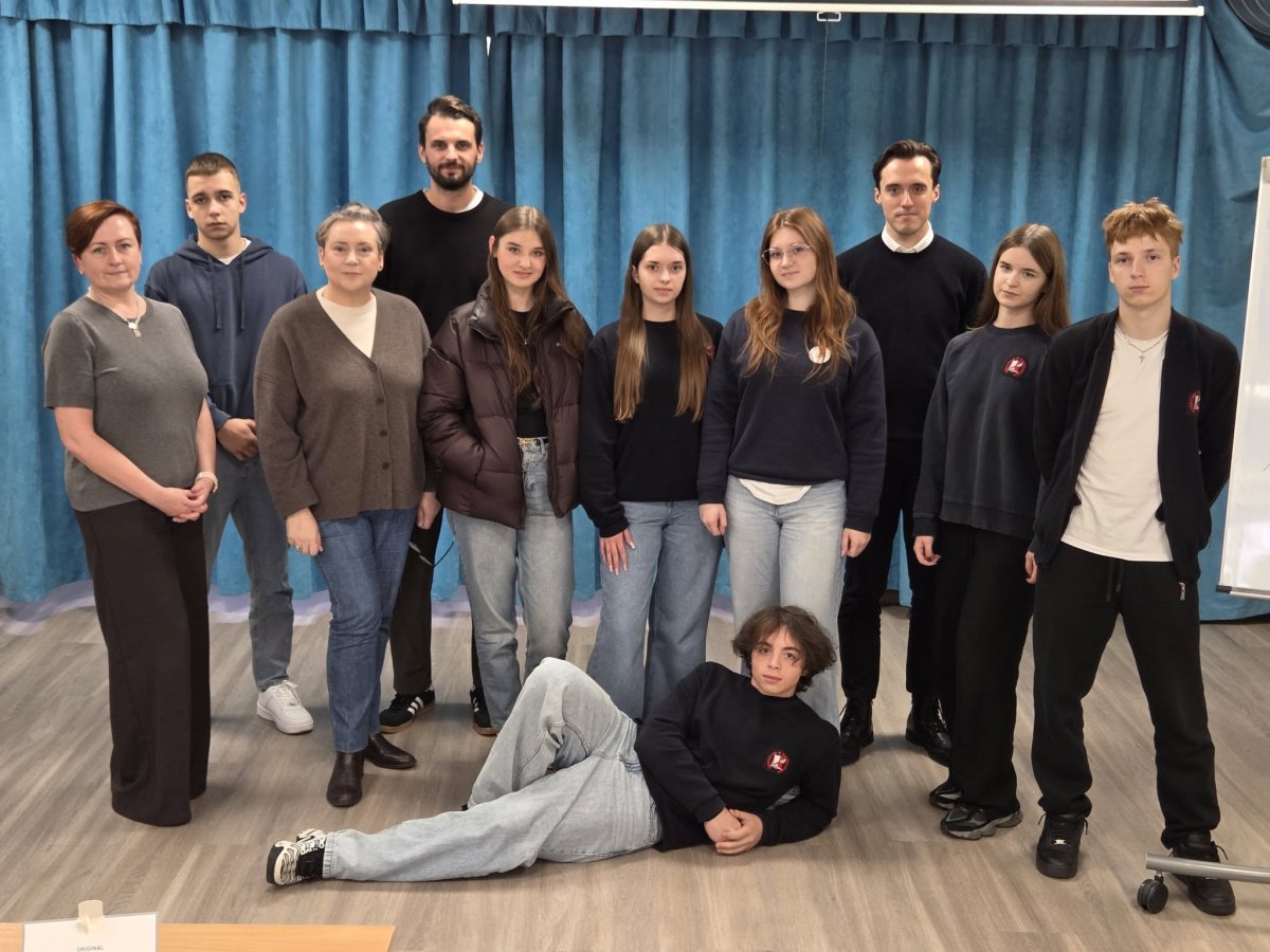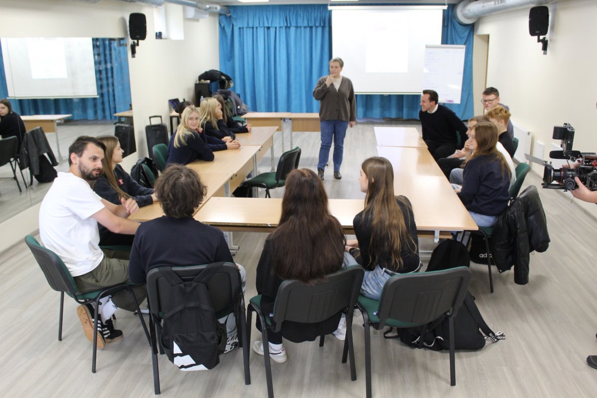 15 października 2025 r. do naszego gimnazjum przybyli dziennikarze TVP Wilno Panowie Tomasz Karazo i Łukasz Czunkiewicz, którzy przeprowadzili warsztaty dziennikarskie, polegające na nauce zdobywania umiejętności pracy przed kamerą, przeprowadzania wywiadów oraz nagrywania rolek. Zajęcia praktyczne poprzedziła spora dawka wiedzy teoretycznej. Razem z Tomaszem i Łukaszem do naszego gimnazjum przybyła Dyrektor TVP Wilno Pani Joanna Warecha, która czuwała nad przebiegiem warsztatów oraz przekazała młodzieży wiele cennych wskazówek i porad, opartych na swoim wieloletnim doświadczeniu i pracy w telewizji.