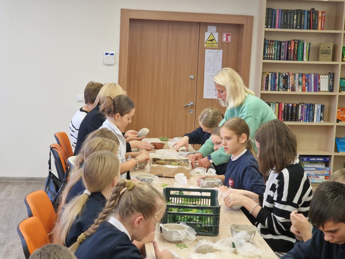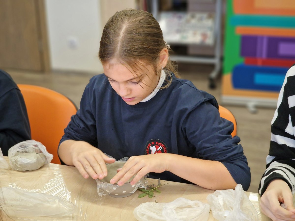 2025 m. spalio 28 d. 5a klasės mokiniai dalyvavo Šalčininkų rajono savivaldybės viešojoje bibliotekoje surengtose kūrybinėse dirbtuvėse „Lėkščių gamyba iš molio“, skirtose Klimato kaitos savaitei paminėti.