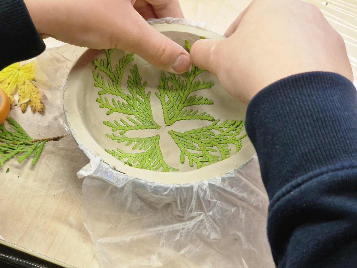 Užsiėmimo pabaigoje kiekvienas džiaugėsi savo unikalia lėkšte – kūriniu, kuris primena, kaip glaudžiai žmogus susijęs su gamta. Visos dalyvių lėkštės bus išglazūruotos, išdegtos krosnyje bei taps dovana šių kūrybinių dirbtuvių dalyviams.