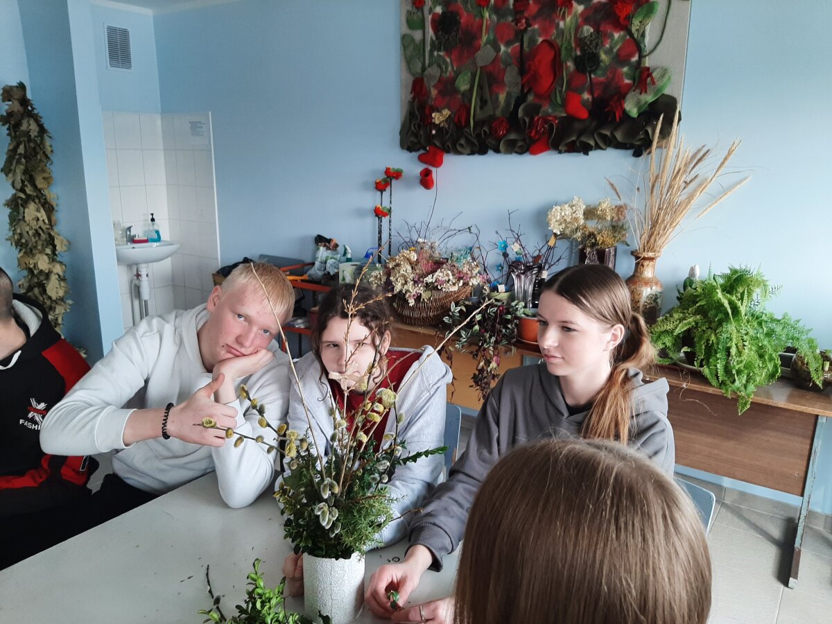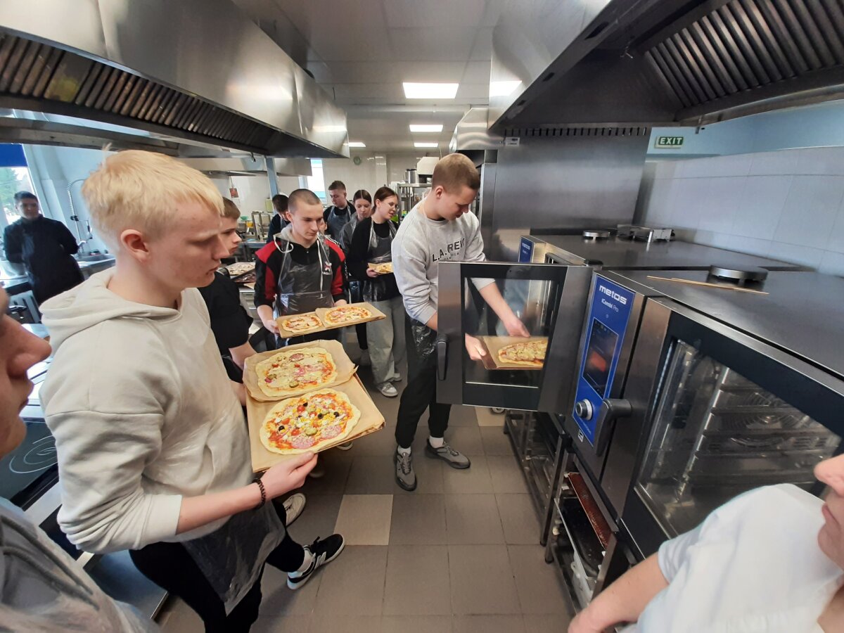 Virėjo ir konditerio dirbtuvėse mokiniai gamino picas ir desertą, susipažino su maisto ruošimo subtilybėmis bei darbo virtuvėje principais. Dekoratyvinio apželdinimo užsiėmime, artėjant šventėms, mokiniai mokėsi pinti verbas, ugdė kūrybiškumą ir kruopštumą.