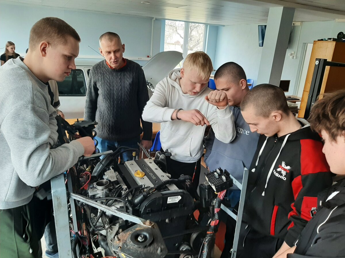 Automobilių remontininko dirbtuvėse mokiniai susipažino su naudojama įranga, įrankiais bei šios profesijos darbo specifika. Jie sužinojo, kokių žinių ir įgūdžių reikia norint tapti šios srities specialistu.